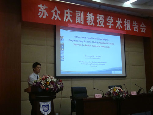 副院长荆晓远教授主持。 背景资料:苏众庆,澳大利亚悉尼大学航空、机械与机电工程学院博士。2006年获得澳大利亚科学工程院“青年研究学者”, 以及澳大利亚研究基金会“青年学者海外研究奖金”。主要研究方向包括结构健康监测,无损检测,智能材料与结构,生物力学,先进复合材料,传感器技术,数字信号处理。至今发表了2本专著,4篇专著章节,编辑了2本国际会议论文集,以及 100余篇科技论文,其中包括60篇SCI检索期刊论文。其中由英国Springer出版社出版的专著“Identification of Damage Using Lamb Waves: From Fundamentals to Applications”为第一本全面阐述基于Lamb Waves的损伤检测技术的书籍。现任欧洲结构健康监测执委会会员以及亚太结构健康监测会议委员。