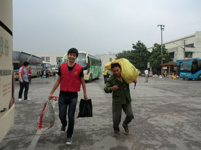 当天,虽然天空下着毛毛细雨,却挡不住志愿者们前进的步伐,浇不灭他们内心洋溢的热情。上午9点,爱心社志愿者经过汽车东站工作人员简单培训后,他们穿上红马夹,按分好的小组来到自己的工作岗位,迅速投入到工作中。在售票大厅,志愿者热情的为乘客们疏导排队;在检票口,志愿者积极的为乘客搬运沉重的行李;在候车室,志愿者热心的为乘客倒上免费的热水;在停车场,志愿者热情地为乘客引领出站上车……哪里有需要,哪里就活跃着志愿者的身影。
