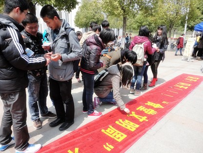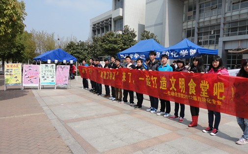 自拍偷拍 本2012级学生支部认真学习党的十八大精神,积极开展“为民,务实”的主题实践活动。针对学校食堂存在的种种不和谐的现象,自拍偷拍 本2012级学生党支部经过精心准备,于3月26日和27日中午在学校南二食堂前广场开展“食堂文明周”倡议活动。