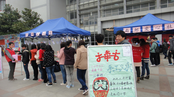 在3月22日南二广场的摆摊义卖现场,迎来了本次活动的高潮。孩子们认真做手工的照片吸引了不少我校师生,摊点前围满了挑选工艺品的和咨询义工活动的同学,校报记者也闻讯而来采访。有些同学一口气买了好多件“商品”,就是希望能够多献一份爱心。作为对大家奉献爱心义举的回馈,爱心社为每位献爱心的师生赠送了一份象征春日里正能量的向日葵种子。本次活动得到了全校师生的积极响应,共募集善款近600元。在4月10日的支教之行中,将善款全部捐给尧化门流动人口子弟小学的三位优秀小学生,以激励他们刻苦学习,好好生活。