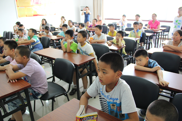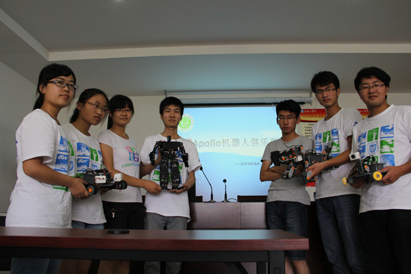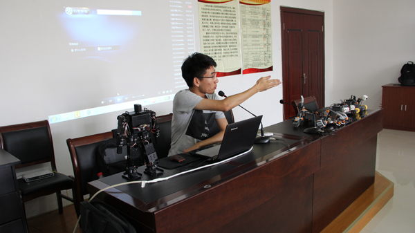 机器人创新实践基地主席、2013年robocup世界杯3D仿真组冠军获得者赵赫成同学应邀担任主讲。本次活动得到了学院老师的关心支持和南湾营社区领导的亲切指导。参加活动的小朋友进入会议室,他们看到桌上摆放的各类机器人,既好奇又兴奋,“机器人!机器人!”他们纷纷用稚气的声音欢呼着。活动正式开始,赵同学向孩子们问了一个问题“你们心目中的机器人是什么样子的”?这一问题将小朋友带入了机器人的世界,他们争先恐后地回答,有的说“机器人可能会害人”有的说“机器人会爆炸”还有的说“机器人力大无穷”,赵同学通过视频放映的形式告诉了孩子们机器人到底是什么,他为他们讲解了机器人的发展历史和发明构成。