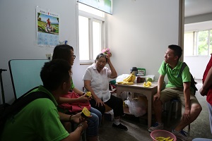 第一分队看望的是孤寡老人胡祥珍。对于大学生们的来访,胡祥珍老人十分高兴,还亲切地与学生们交流。第二分队看望的是低保户张大林老人。张大林老人虽然不与儿女住在一起,但是平日生活起居却井井有条,同学们的到来让他感受到了温暖。第三分队看望的是聋哑老人殷王氏。殷王氏老人天天佩戴社区志愿者袖章在社区巡逻,虽然是聋哑残疾人,非但没有影响她的生活,反而发挥余热给社区带来了安全保障。