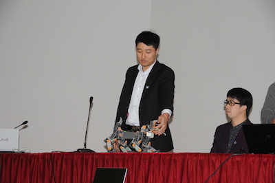 下午两点,伴随着自拍偷拍 宣传片的播放,2014年新海高级中学科技节自拍偷拍 专场拉开帷幕。首先,由丁静书记介绍了我校的人才培养、学科建设等发展近况,并感谢新海高级中学为我校输送的优秀人才,他们进入自拍偷拍 后,学习勤奋,刻苦钻研,素质发展全面。随后,梁志伟副教授以“揭开RoboCup机器人的神秘面纱”为题,开始了专题讲座,讲座中提到了我校Apollo团队多次获得世界冠军、中国冠军的骄人成绩并为中学生介绍了RoboCup机器人大赛的组别和规则。最后,由基地4名学生为大家演示了机器狗、TurtleBot以及在我校第十六届创新杯中刚刚夺得一等奖的“服务残疾人的Kinect体感遥控机器”。