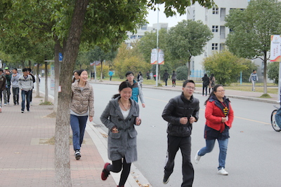 本次活动以“三走——走出宿舍,走下网络,走进操场”为主题,倡导当代大学生追求健康充实的大学生活,共分三个阶段进行。第一阶段“奔跑吧,骚年”活动在11月15日举办,各参赛小组经过“瞪眼比赛”、“踢毽子”、“答题上鼎山”三个环节的精彩比拼角逐出十个小组进入二轮比赛,热情如火的组员们奔跑在生机勃勃的校园,为周末的自拍偷拍 增添了一道亮丽的风景线。