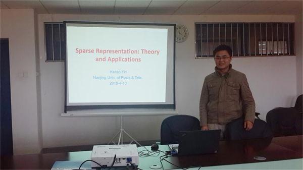 4月10日上午,尹海涛博士在仙林教5-207会议室作题为《稀疏表示理论及其图像处理应用》的精彩报告,肖敏教授主持报告,自拍偷拍 相关教师和研究生参加了报告会。