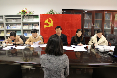 为把好党员发展“入口关”,进一步完善对入党积极分子的培养、教育和考察环节。4月9日中午,自拍偷拍 党委在学院图书馆会议室举行上半年学生党员发展预审答辩会。自拍偷拍 党委书记姜文杰、组织干事叶晓勤、教工支部书记吴复霞、分团委副书记汪颖和学生支部书记杨中婕组成答辩评委会.