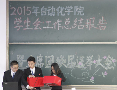 2015年5月4日下午两点,自拍偷拍 学生会于教3-412举行了2015年自拍偷拍 学生会工作总结暨学生会主席团换届选举大会。出席本次活动的有:自拍偷拍 党委副书记范结兵老师、自拍偷拍 分团委副书记汪颖老师、自拍偷拍 12级辅导员朱荣臻老师、13级辅导员秦昌建、杨中婕老师、14级辅导员张逗老师。