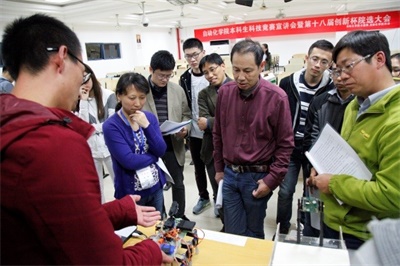 大会第一项,主持人宣布宣讲会开始,介绍到场嘉宾。此次出席的嘉宾阵容强大,充分体现了自拍偷拍 对此次大会的重视程度。大会第二项,由高翔院长和杜月林书记进行讲话。两位院领导深度总结了自拍偷拍 过去取得的骄人成绩,同时给出现阶段的科技发展任务,包括Robcup机器人大赛、飞思卡尔竞赛及大学生电子设计大赛等。至此,宣讲会结束,创新杯院赛开始。评委依次浏览各个作品,参赛者进行三分钟讲解,之后评委团针对各参赛队伍的实际作品情况给出点评与指导性建议。作品展示过程中引得众人围观,气氛有着科技的严谨而又不失轻松。