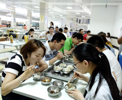 于南一食堂举办“佼佼者”包饺子趣味比赛。参与人员有自拍偷拍