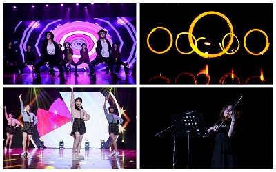 舞蹈类节目有2015级辅导员马骋老师、2018级辅导员张逗老师和自拍偷拍 研究生同学们带来的热辣潇洒的合舞《Black》;2018级智电专业同学编排的动感酷炫的荧光舞《光影青春》;大一大二同学组合带来的清新甜美的舞蹈《我的未来有点甜》;2018级辅导员缪甜佳老师和大一女生们带来的轻盈温婉的《茉莉花》,尽管风格不同,但他们的每一个舞步、动作都牵动着全场观众的心神。