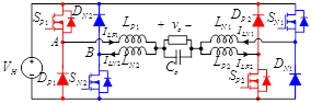 图4采用P-PVSC和N-PVSC构成的四象限DBI 针对现有两级式DC/AC系统功率两级处理、效率较低的问题,提出了基于DI-DBI的准单级DC/AC系统架构。将DI-DBI中的一个端口作为直流母线,另一端口作为输入端口,构建了准单级DC/AC系统,以进一步提高DC/AC系统的效率。从PVSC替代法和直流电压源替代法生成的单相两象限DI-DBI种选取典型电路DB6和DB5,对两种电路及其构建的准单级DC/AC系统进行了深入研究。详细分析了电路的工作原理,提出了适用于DI-DBI的电压自适应载波层叠SPWM调制策略,分析了系统的单级功率传输比,实验测试了系统的稳态、动态性能及效率。分析和实验结果表明,与传统两级式DC/AC系统相比,准单级DC/AC系统可以实现大部分功率的单级转换,减小了前级Boost变换器的定额和损耗,系统效率更高。