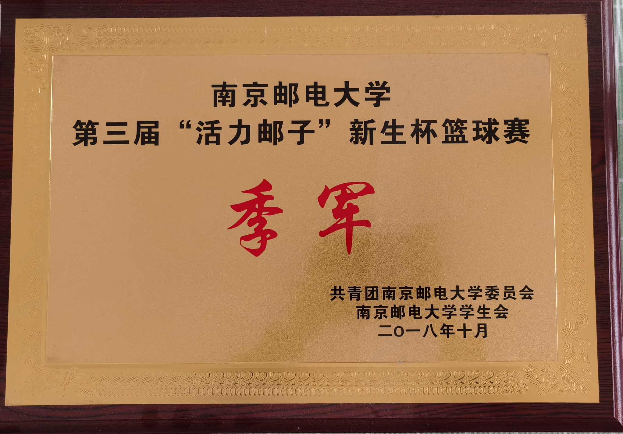 自拍偷拍 在2018年自拍偷拍 第三届“活力邮子”新生杯篮球赛中荣获季军