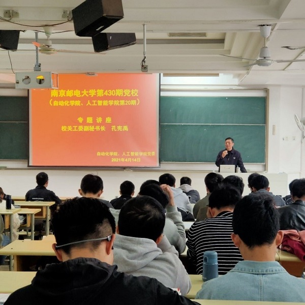 2021年4月14日下午,自拍偷拍 、人工智能学院党委在教2-102开展了自拍偷拍 第430期(学院第20期)党校专题讲座。本次讲座特邀校关工委副秘书长孔宪禹老师主讲,培训班全体学员参加了此次专题培训。