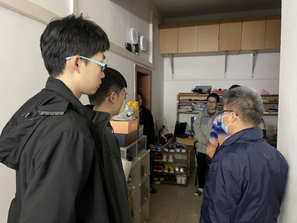 323日上午,学院党委书记张翼、院长岳东、党委副书记孙委委、副院长丁磊、全体研究生辅导员、2019级本科生辅导员走访樱苑研究生宿舍、本科生宿舍,与同学们进行了谈心交流,关心了同学们的实际生活困难,了解近期网络授课的学习情况。学院领导指出,同学们要严格遵守疫情防控规定,做好宿舍卫生打扫,定期通风,做好个人防护,参加体育锻炼;要注意宿舍用电安全,排除安全隐患;希望同学们认真参加线上课程,注重科学研究,主动与老师沟通交流,珍惜大学时光,锻炼扎实本领。