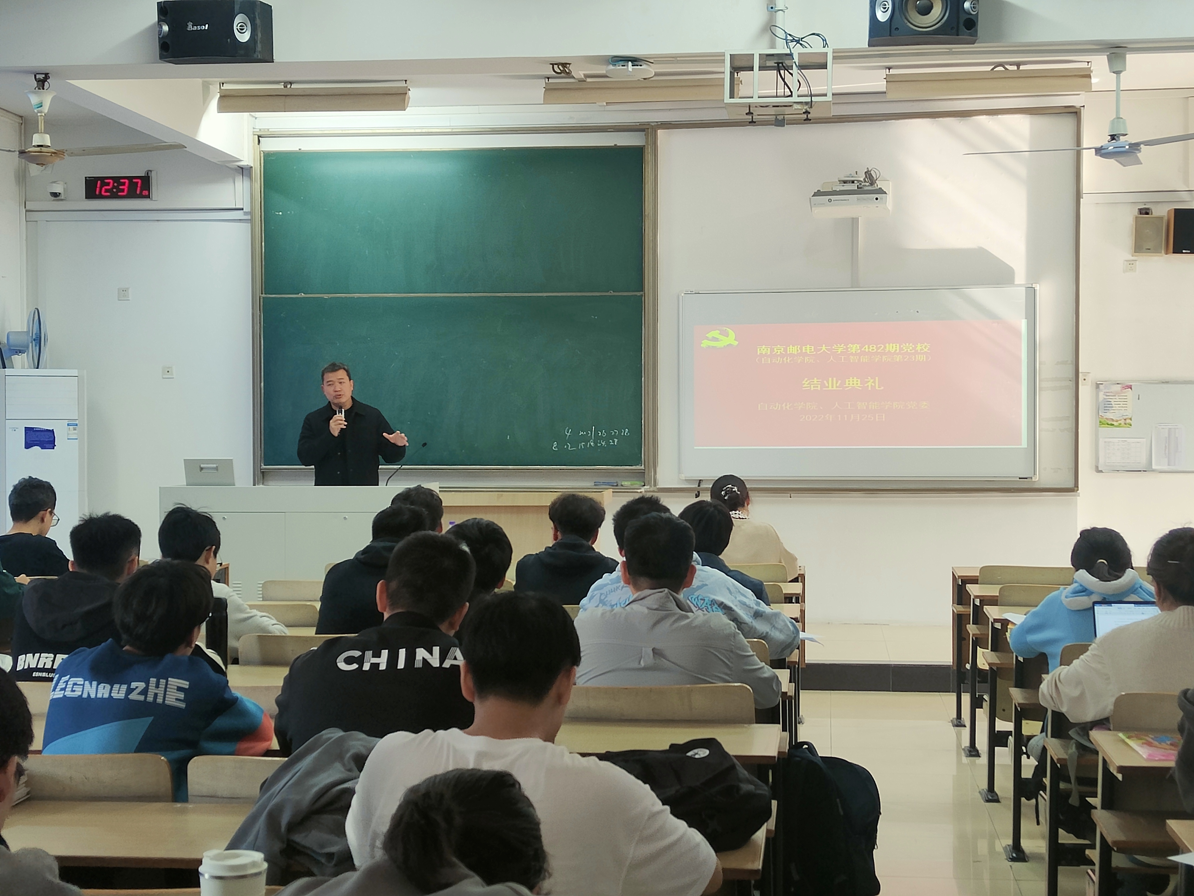 11月25日,自拍偷拍 第482期(自拍偷拍 、人工智能学院第23期)党校结业典礼在仙林校区教2-403教室隆重举行。自拍偷拍 、人工智能学院党委副书记、副院长孙委委、辅导员杨中婕及全体党校学员参加典礼,结业典礼由杨中婕老师主持。