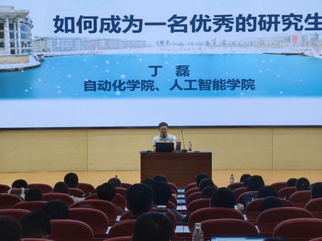 丁院长结合研究生阶段的学业特点和专业特色,从“什么是研究生?”、“研究生应该做什么?”以及“怎样成为一名优秀研究生”三个问题聚焦,进行了深入细致的阐述和分析;同时指出同学们要养科学之道德,培学术之规范,专注科研,刻苦努力,牢记科研诚信、杜绝学术不端。他希望各位研究生要主动进行思考训练,培养综合性思维,同时坚持理论联系实际,增强团队协作精神,创造出真正有价值的科研成果,努力把论文写在祖国的大地上。