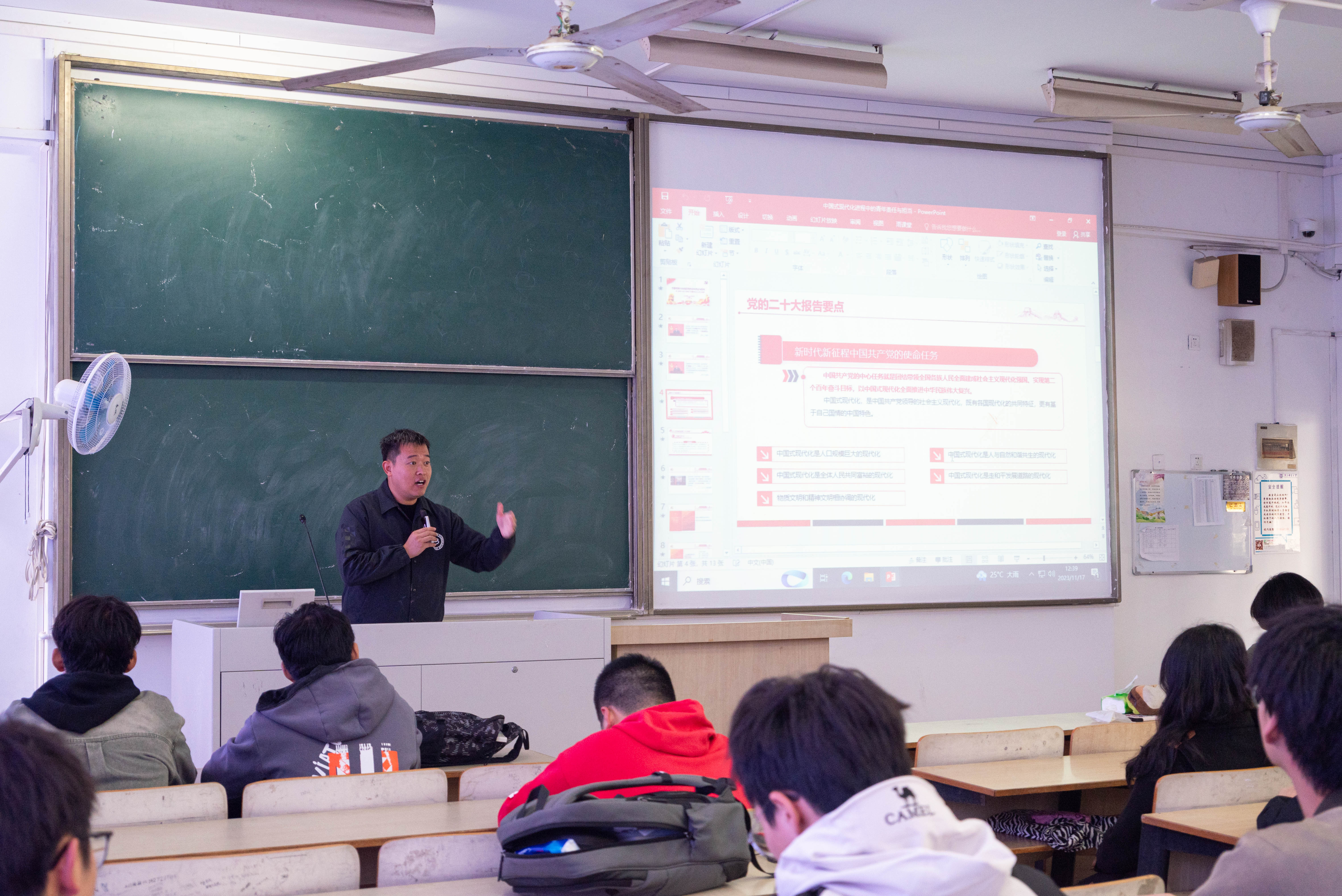 孙书记带领大家学习习近平总书记的重要讲话精神,党的二十大报告以及习近平总书记在历次重大会议、重要场合的讲话中关于青年的要求,解读了中国式现代化是中国共产党领导的社会主义现代化所包含的内容,强调了共青团的初心使命是“坚定不移跟党走,为党和人民奋斗”,并对学员们提出了四点建议,一是学好专业知识,加强自我管理;二是优化宿舍氛围,团结友爱互助;三是遵守校纪校规,树立规则意识;四是积极参与竞赛、社会实践、志愿服务。希望学员们在今后的学习生活工作中,以更高、更严的标准要求自己,发挥先锋模范作用,争当示范表率,争取早日成为一名光荣的共产党员。