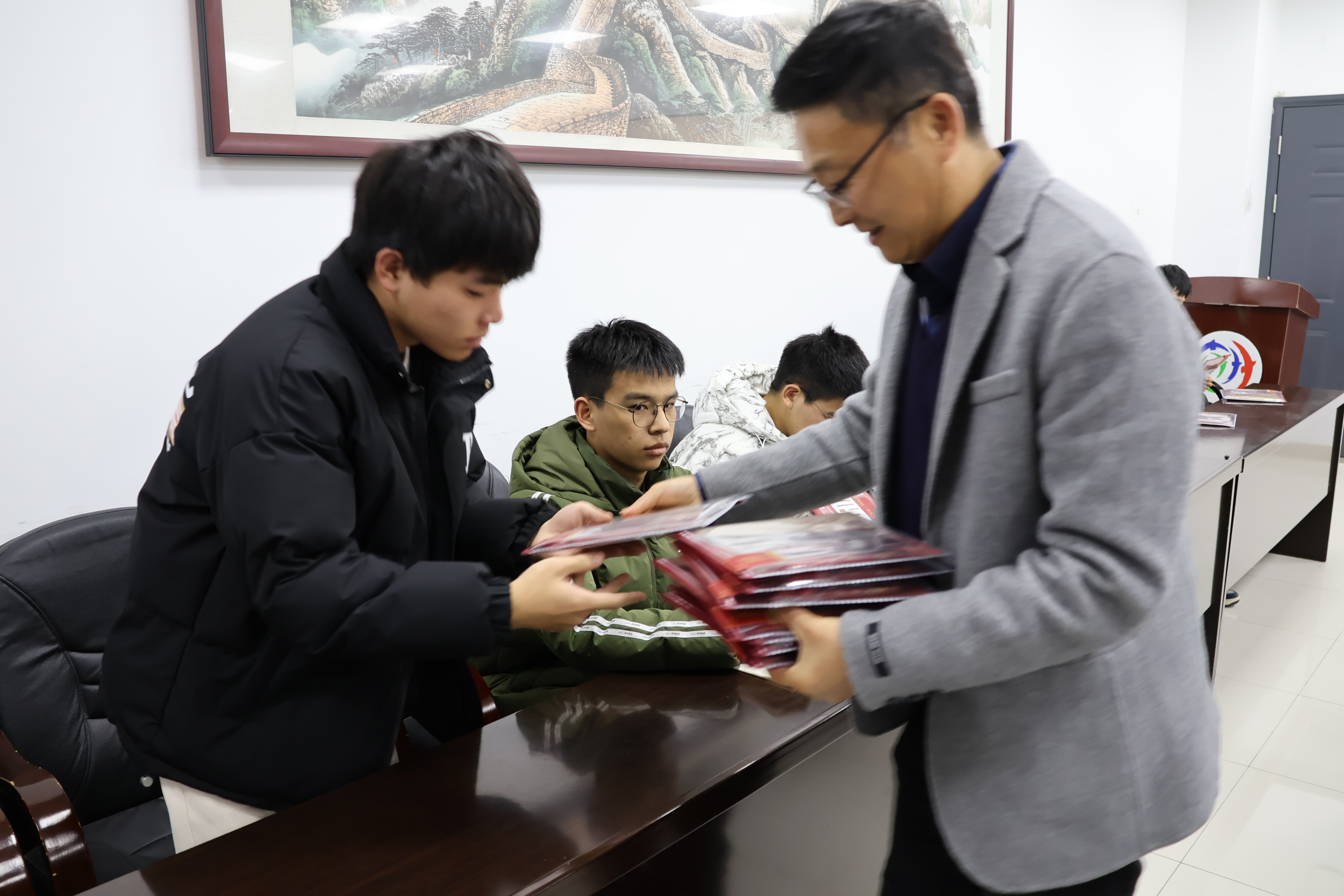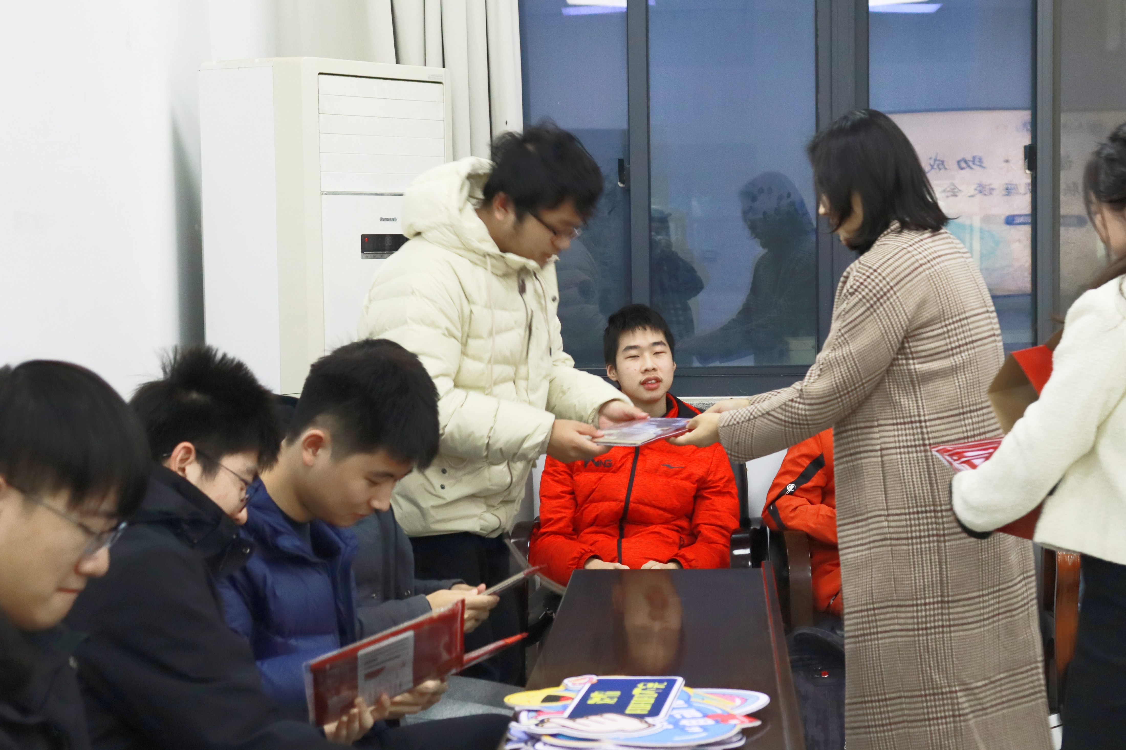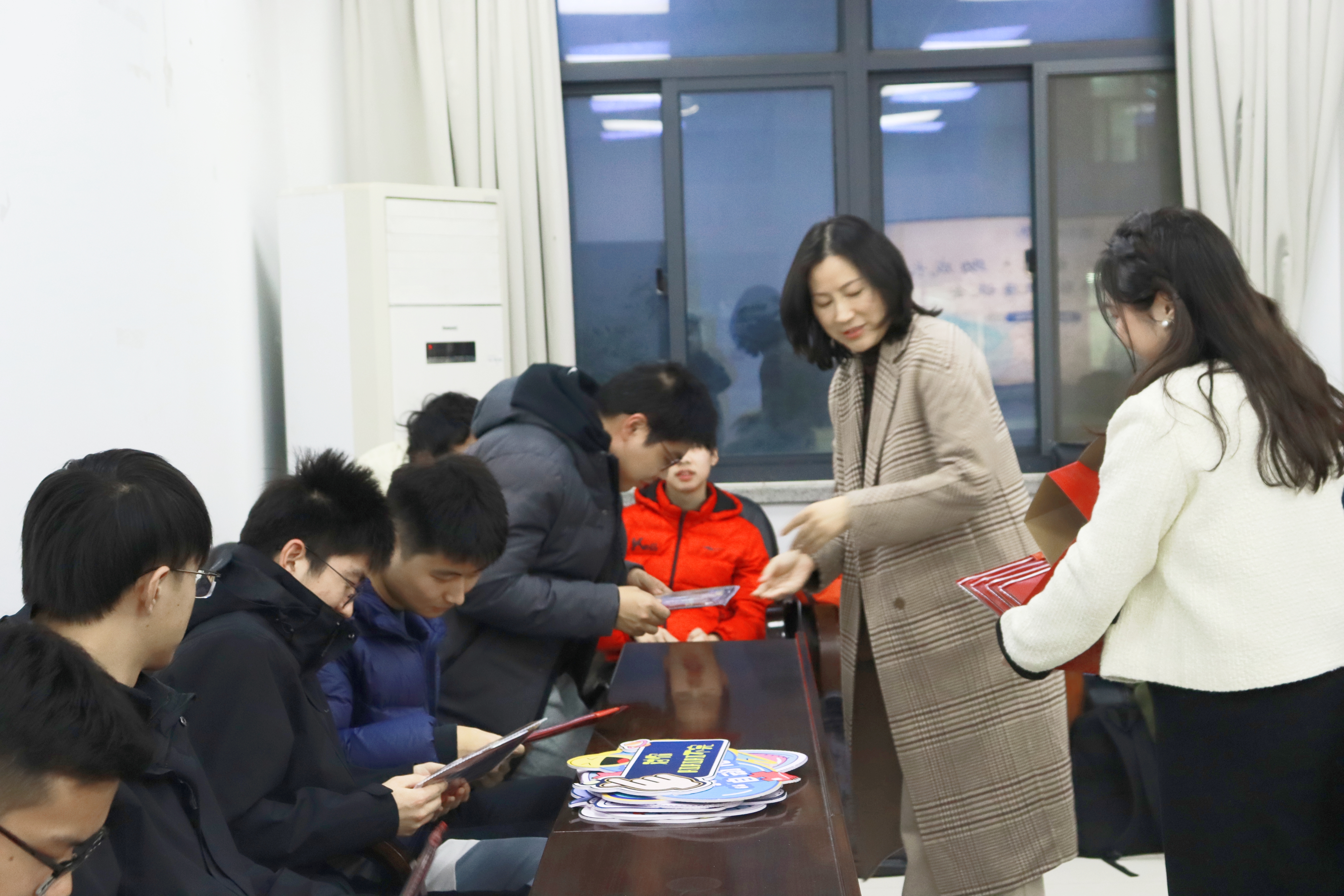 十二月是期末季、考试季。辅导员齐沁儿老师为同学们准备了故宫文化主题文具套装,希望用红火精美的包装、丰富实用的配置和细节满满的心意,为大家的复习备考助力。张敏部长、张翼书记、孙委委副书记向每一位在场同学亲手送上小礼物。