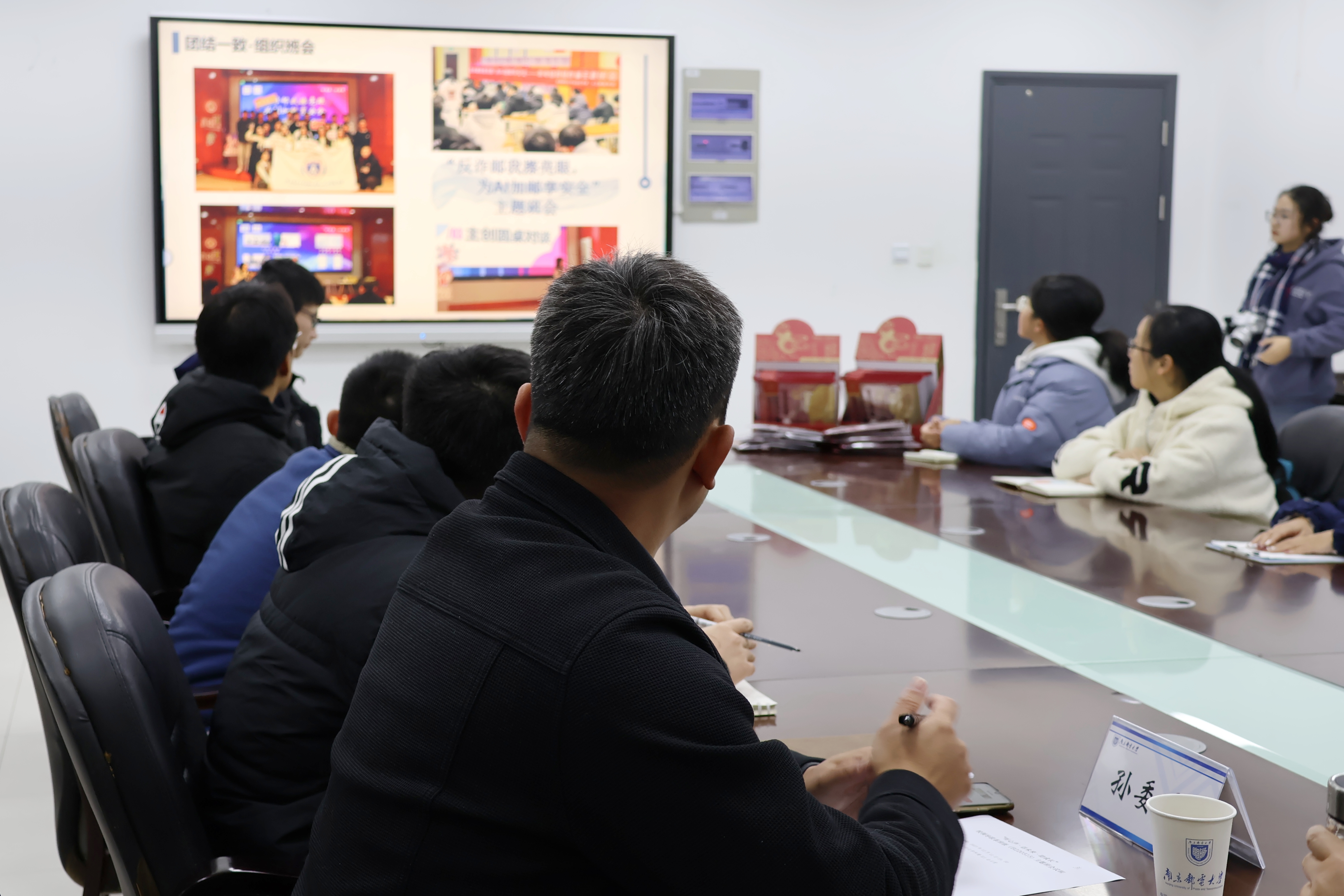 班长周炜杭作班情汇报,以“前沿追梦,AI领航”为主题,从“芯片铸魂——强思想引领”“数据挖掘——固学涯探索”“编程建模——优竞赛创新”“优化控制——提综合素养”四个维度展开,极具学科专业特色。获奖多、绩点好、活动参与度高、班级凝聚力强的优秀表现,给与会领导留下了深刻印象。