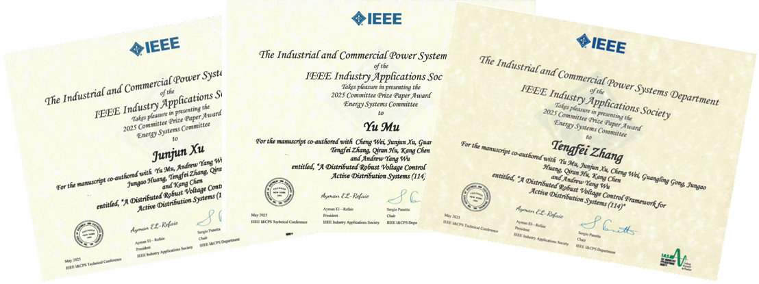 喜报!自拍偷拍 师生获IEEE/IAS 2025年度能源系统专委会唯一最佳论文奖