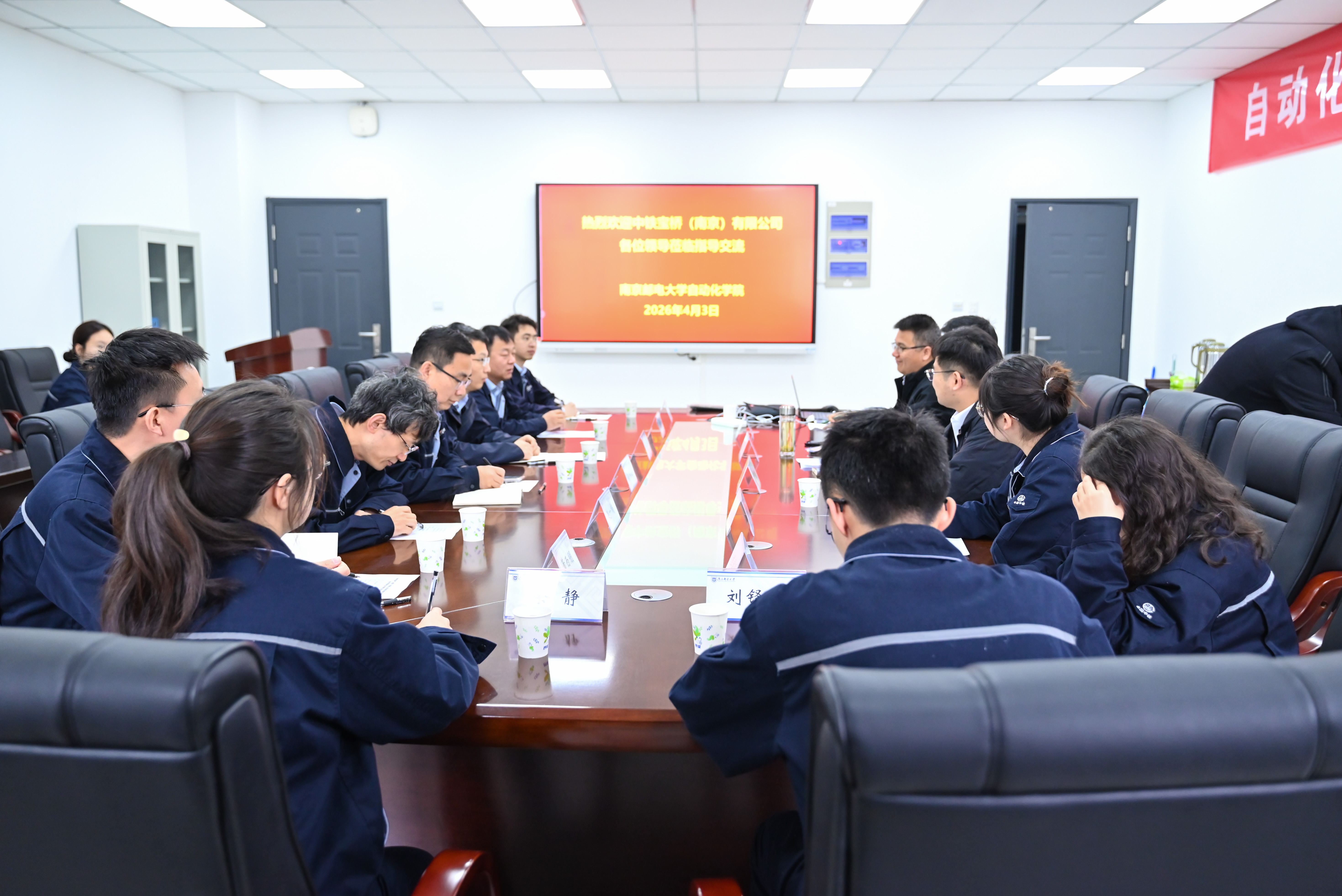 为深入贯彻落实党的二十届四中全会精神,扎实推进“一融双高”建设,以高质量党建引领校企协同创新,2026年4月3日,中铁宝桥(南京)有限公司总工程师吴钟敏率队到访自拍偷拍 ,开展“党建引领产学研合作”专题交流。学院党委书记张翼主持座谈会,副院长徐丰羽,自拍偷拍 教师、南京新港产业创新研究院副院长吴巨爱及自拍偷拍 教师代表参会。