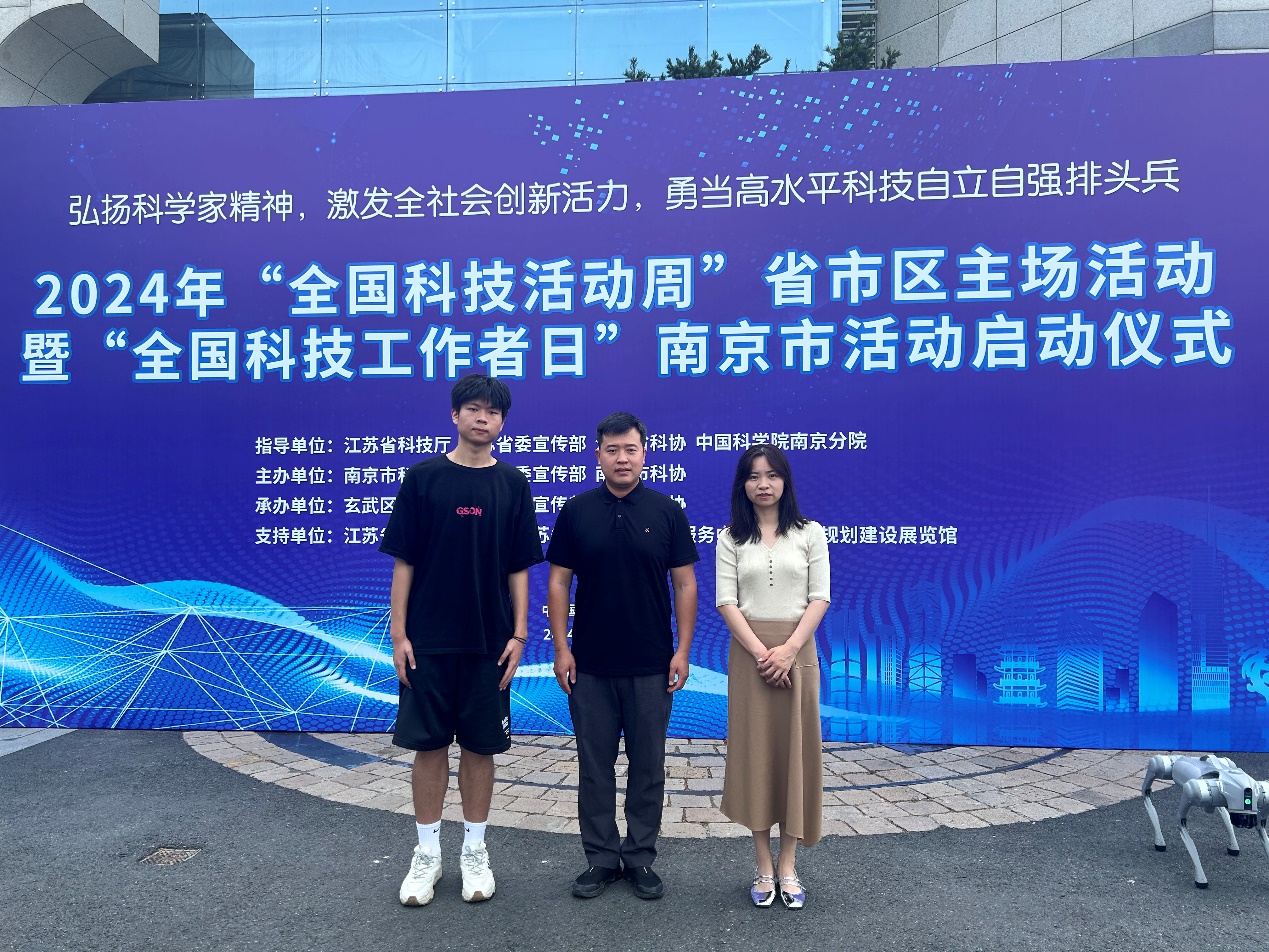 ,以弘扬科学家精神,激发全社会创新活力,勇当高水平科技自立自强排头兵为主题,在南京市规划建设展览馆序厅举办的2024年“全国科技活动周”省市区主场活动暨“全国科技工作者日”南京市活动启动仪式上,自拍偷拍 、人工智能学院荣获“南京市科普教育示范基地"称号, 自拍偷拍 党委副书记、副院长孙委委、分团委书记郑春春、科学与技术协会学生代表费树宇参与授牌仪式。