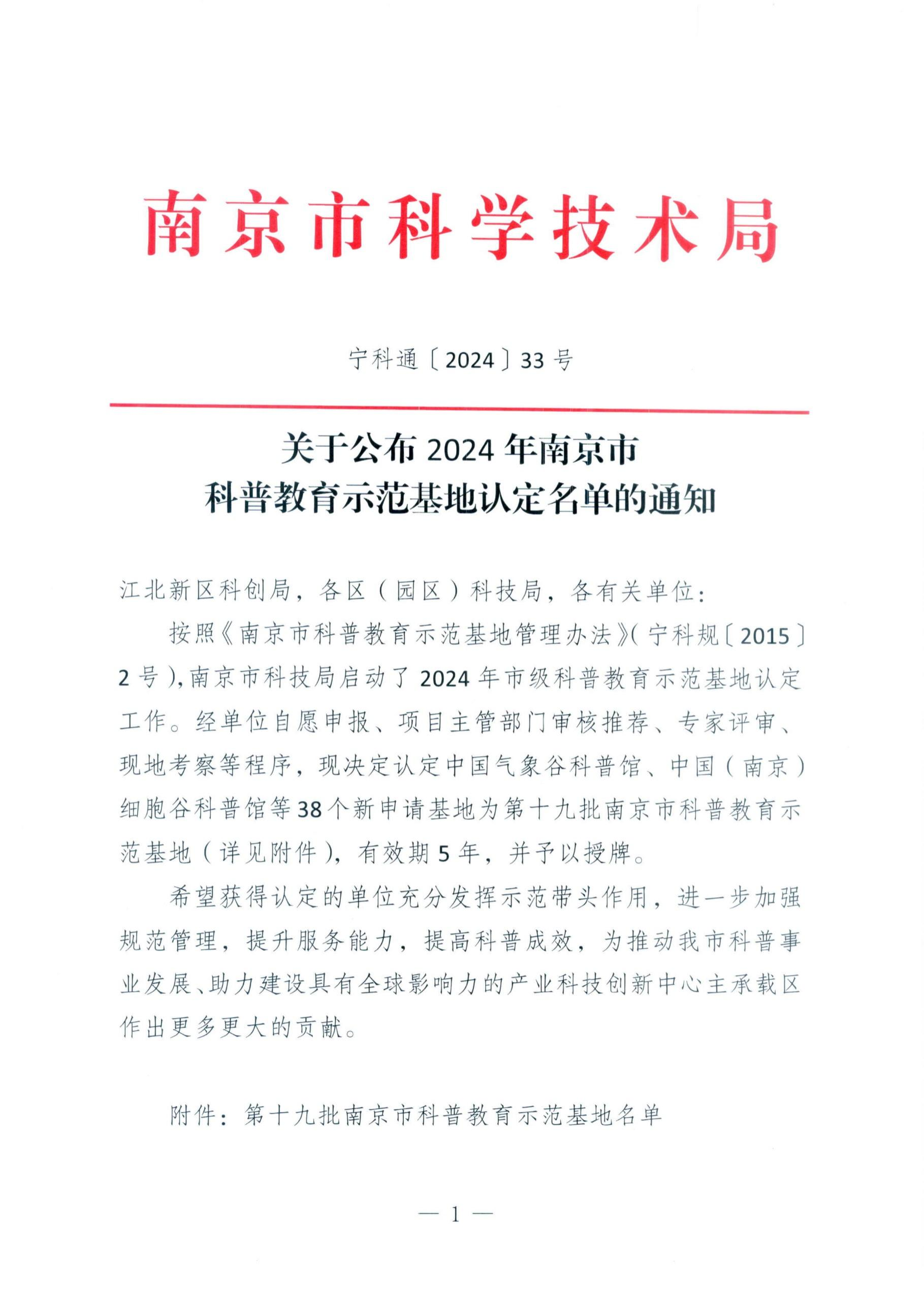 热烈祝贺自拍偷拍 荣获“南京市科普教育示范基地”称号